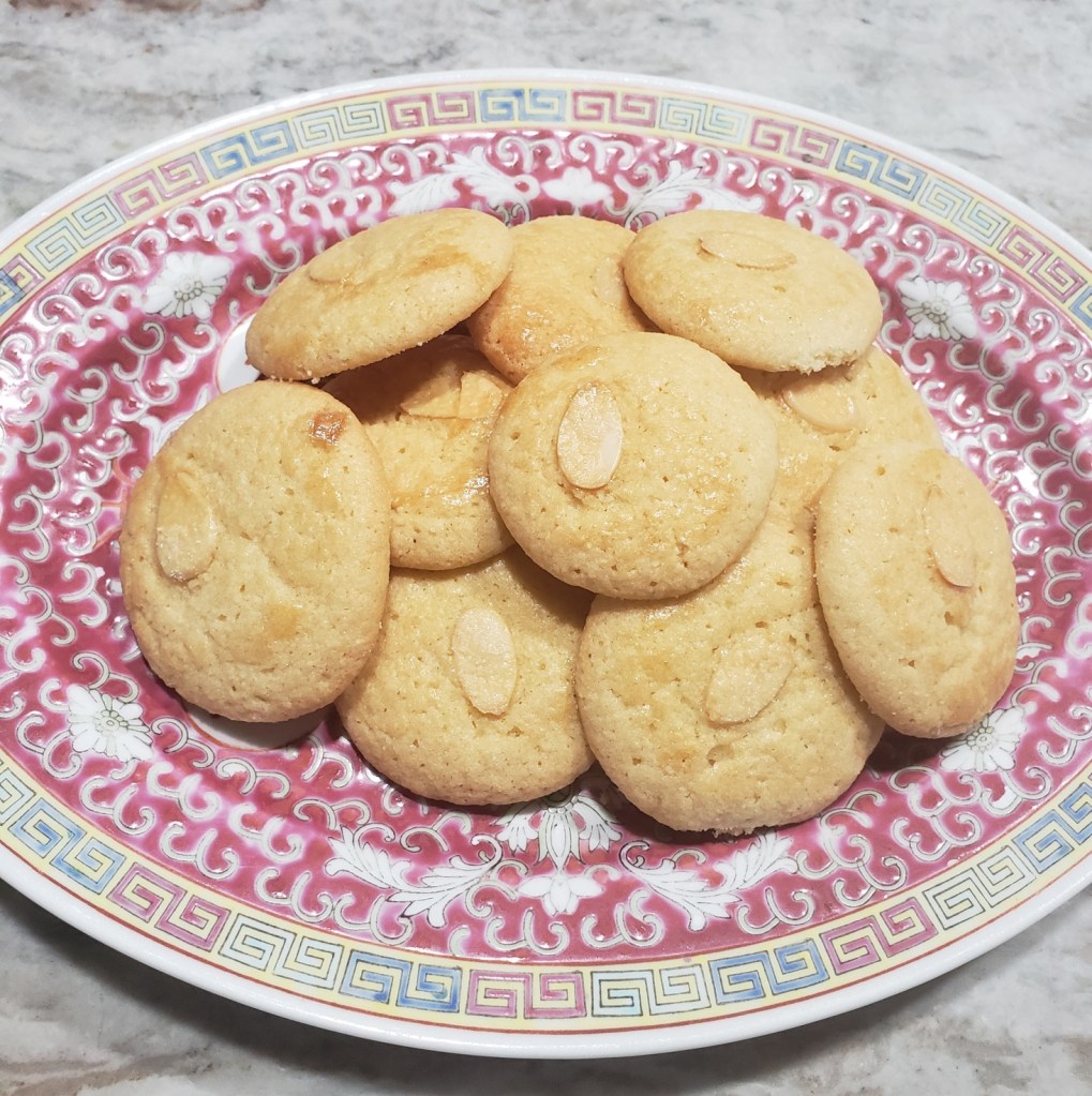 It’s fun when the girls (or women as we are known as you reach a certain age,) get together to chat, eat, laugh and simply be ourselves. Tomorrow night we’re gathering in my living room to watch that ultimate “girl movie” Shirley Valentine! I’m not cooking, but instead I’m ordering Chinese. But I can’t let the evening pass without making something! So I opted for Almond Cookies. When I lived in Manhattan you received a plate of these delicious treats at the end of the meal, but here in Florida it’s passed by as the waiter slips the check under your nose and presents fortune cookies. (My favorite fortune, on a bus shelter on Amsterdam and 82 Street in Manhattan next to the now closed Silk Road Palace, had this text next to an open fortune cookie: “It wasn’t chicken!”)